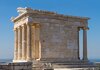 Al mateix temps que els Propileus, es va començar la construcció del petit temple de Nike Àptera, d'estil jònic. Després d'una interrupció deguda a la Guerra del Peloponès contra Esparta (431-404 aC), el temple va ser conclòs a l'època de la pau de Nícies, entre el 421 aC i el 415 aC.