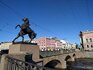 Les quatre estàtues de cavalls que es troben sobre el pont van ser dissenyades per l'escultor rus Peter Clodt von Jürgensburg i són uns dels llocs de referència més recognoscibles de la ciutat. La temàtica deriva dels marbres colossals romans, sovint identificats amb els Dioscurs, situats en el Quirinal, Roma. Les escultures mostren a quatre homes nus domant cavalls salvatges.