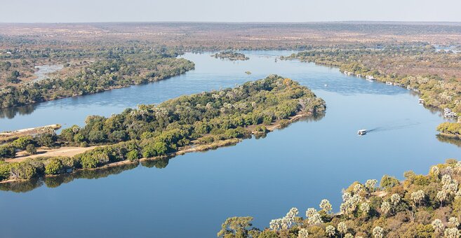 El pont de Dona Ana s'estén pel baix riu Zambezi entre les viles de